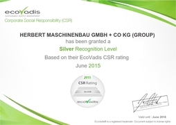 HERBERT hat sich der Bewertung der Corporate Social Responsibilities (CSR) durch eine unabhängige Prüfungsgesellschaft (Ecovadis) gestellt und durch die Prüfung der eingereichten Unterlagen den Silber-Status erhalten.